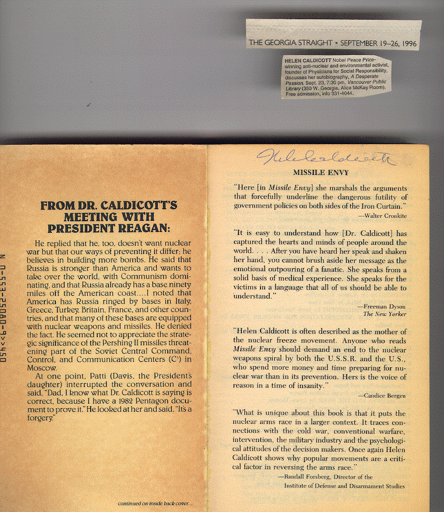 SEPTEMBER 23, 1996 AND SHE SIGNED MY COPY OF HER BOOK, 'MISSILE ENVY'.