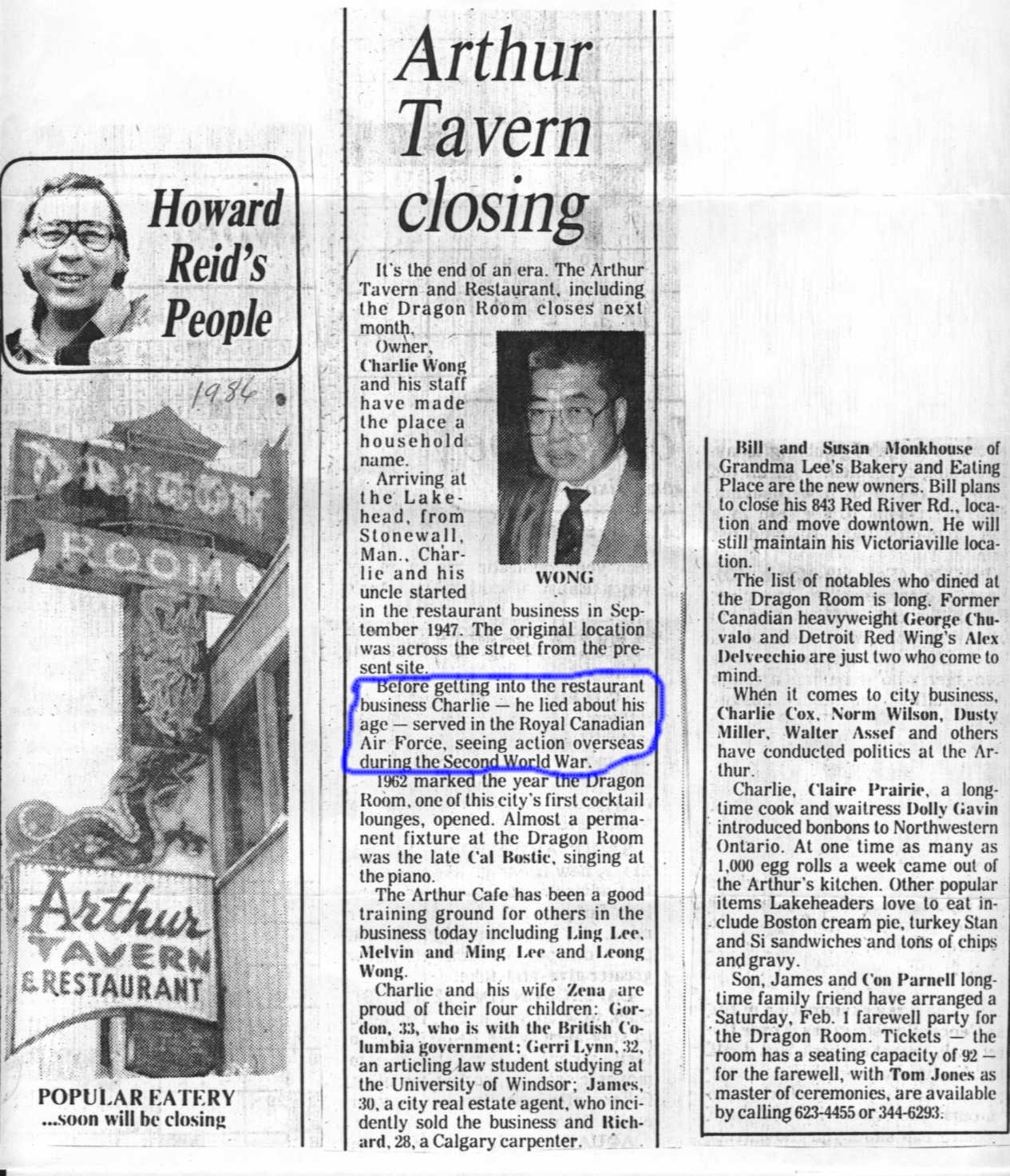 Before getting into the restaurant business Charlie--he lied about his age--served in the Royal Canadian Air Force, seeing action overseas during the Second World War.