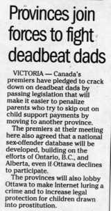 VICTORIA--Canada's premiers pledged Friday to create a national sex offender registry and to make it harder for deadbat parents to avoid paying child support.