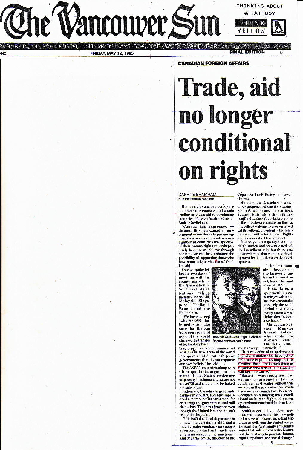(text of May 12, 1995 Vancouver Sun front-page headline article)
