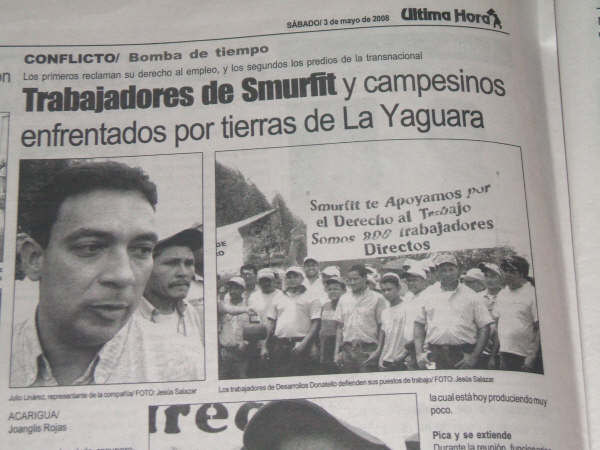 Con respecto a SMURFIT, una de las fincas esta totalmente tomada. Los obreros de SMURFIT están en pie de lucha